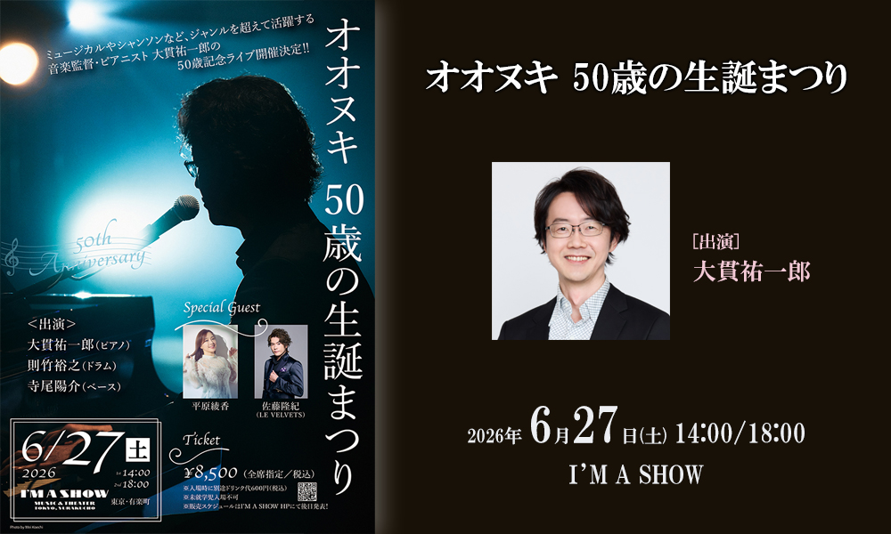 【大貫祐一郎】「オオヌキ 50歳の生誕まつり」詳細発表