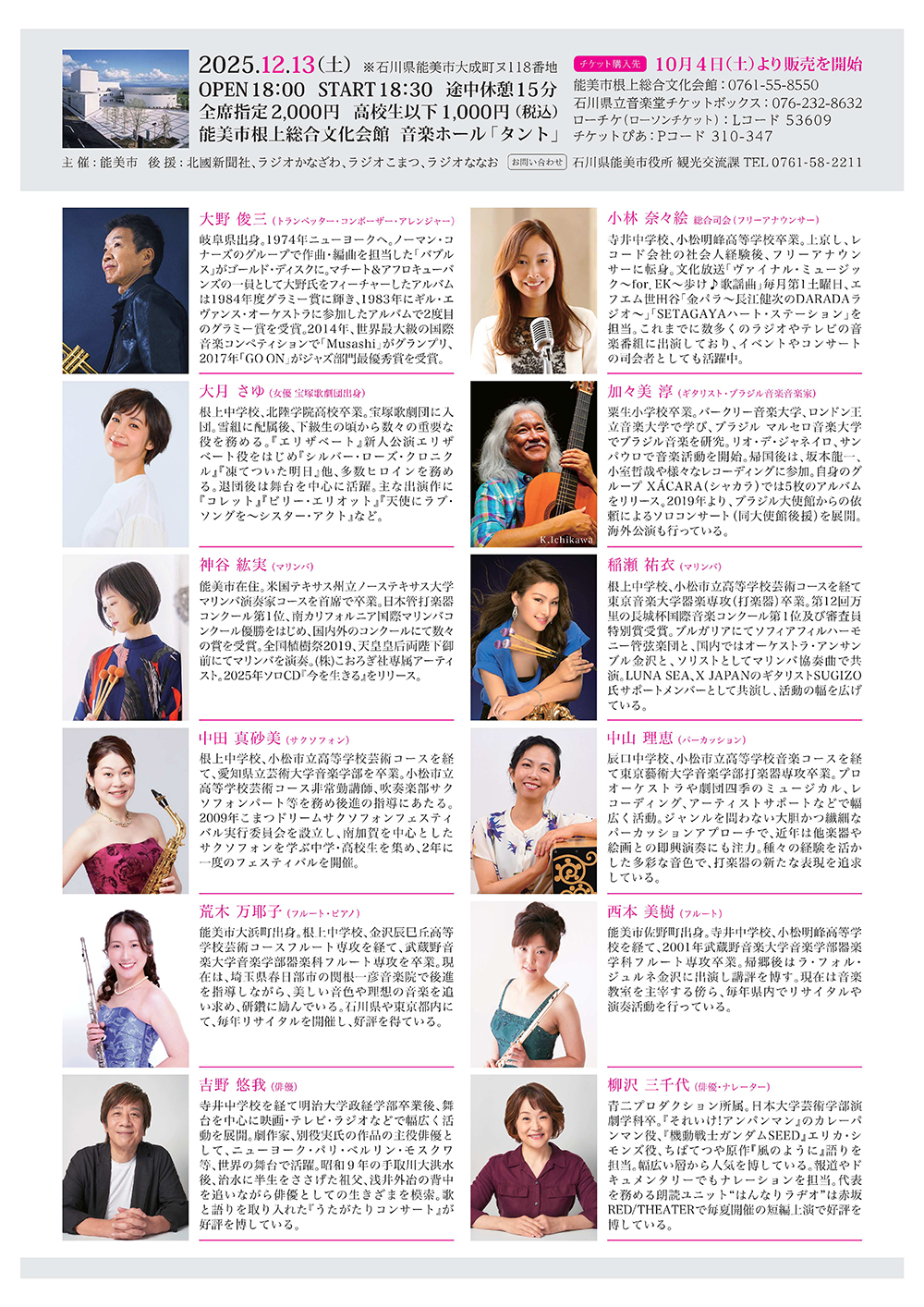 「能美市誕生20周年記念 能美市ゆかりのプロミュージシャンによるコンサート『Nomi 20th Anniversary DREAM CONCERT』」
